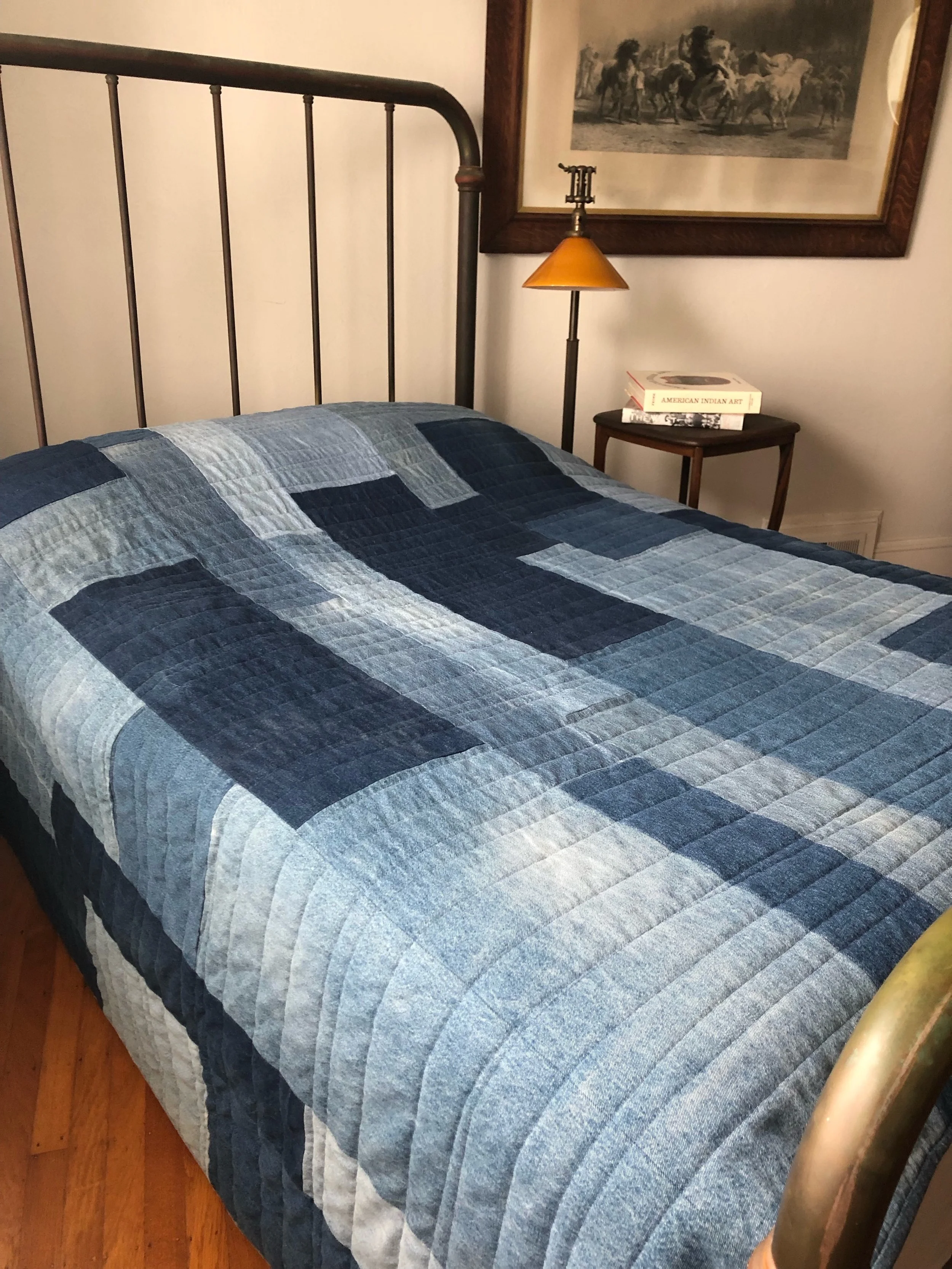 This bed quilt was a gift to my Grandson upon his graduation from High School. It is one-of-a-kind and so not replicable. However……….other color and pattern variations are possible.
